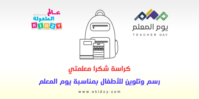 كراسة شكرا معلمتي رسم وتلوين للأطفال بمناسبة يوم المعلم ..